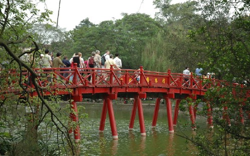 Leave for a legendary Hoan Kiem lake to visit Ngoc Son Temple dedicated to a former general commander Tran Hung Dao for his struggle against Mongolians.